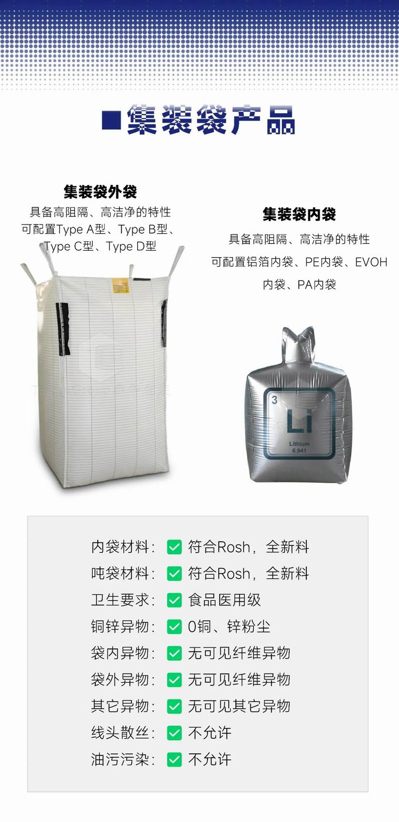 高潔凈度噸袋,杜絕任何雜質(zhì)